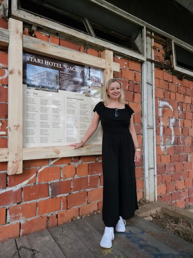 Ideja dr. sc. Ane Klikovac iz Zagreba o postavljanju svojevrsne spomen ploče, ili hommage hotelu Gacka u Ličkom Lešću, naišla je na plodno tlo. Današnje svečano otkrivanje spomen ploče sa stihovima posvećenima hotelu “Još si lijep” popraćeno je predstavljanjem knjige stihova i fotografija Gacke “Ljubav koja vene i ljubav koja cvate”, pa su na nesvakidašnjoj svečanosti posvećenoj Gacki govorile autorica knjige i inicijatorica postavljanja ploče dr. sc. Ana Klikovac i recenzentica zbirke Tamara Jurković, voditeljica book cafea Paradiso. Ploču su zajedno otkrili otočki gradonačelnik Goran Bukovac i dr. sc. Ana Klikovac.