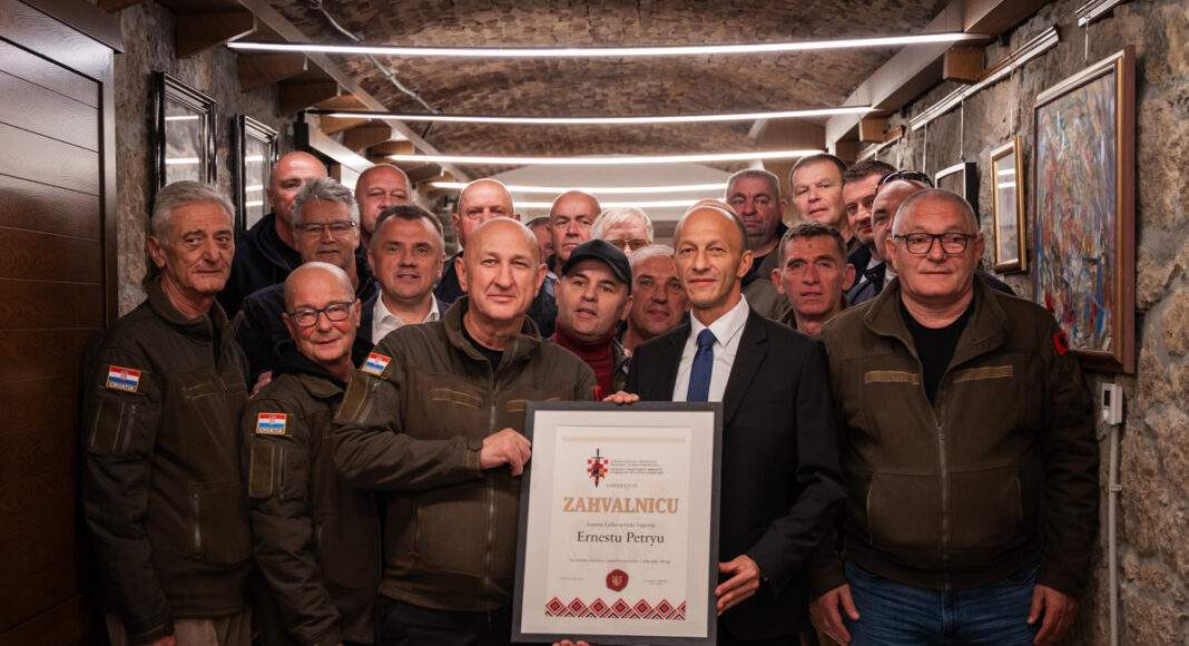 U znak zahvalnosti za doprinos i suradnju, predstavnik Udruge albanskih branitelja Hrvatske Esad Čolak uručila je županu Ernestu Petryju zahvalnicu za iznimnu podršku i promicanje vrijednosti Domovinskog rata.
